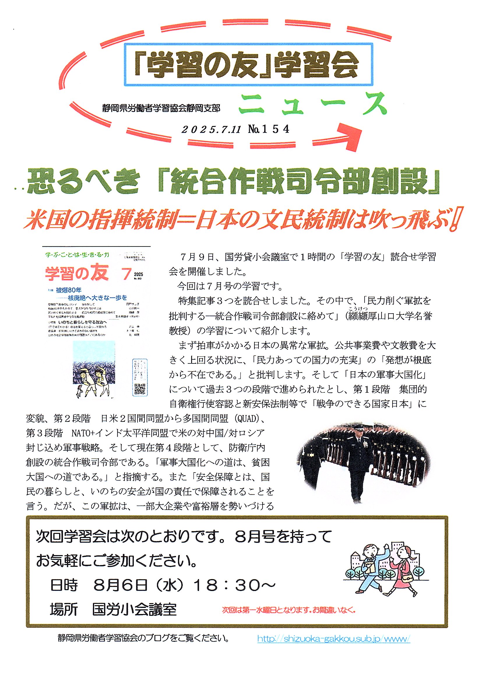 7月9日、静岡市内において「学習の友」学習会を開催しました。